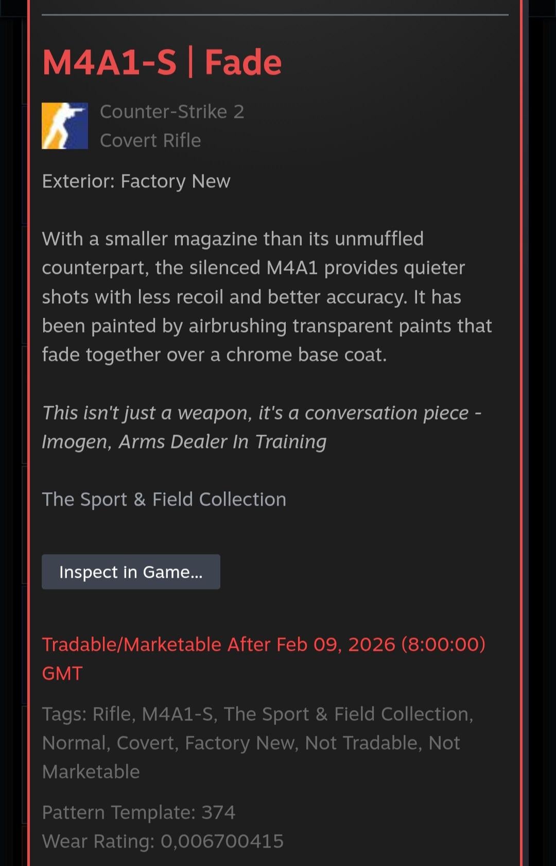Price check: #2 World M4s Fade 100%