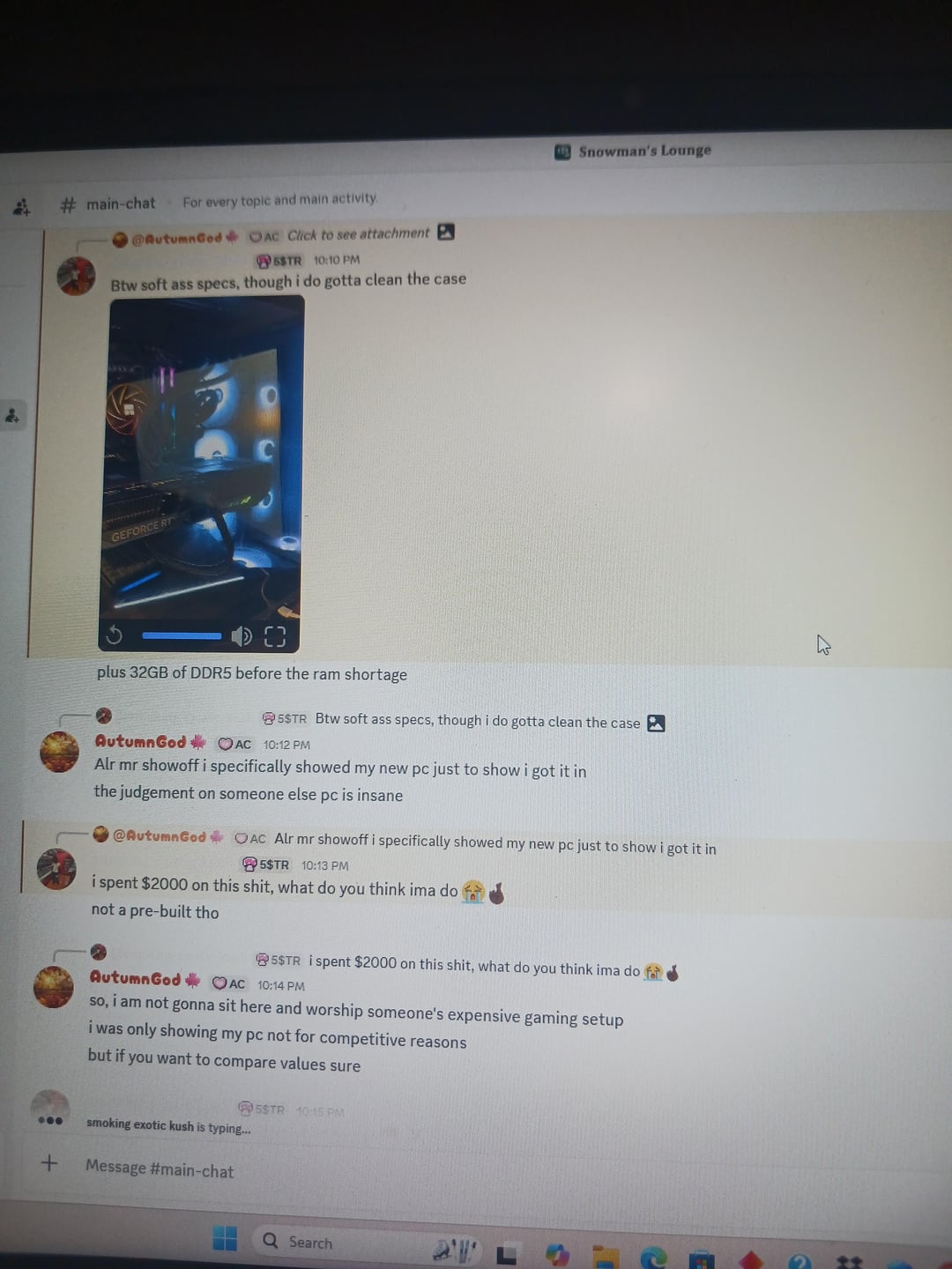 So I had recently got me a new pc specifically to replace emy previous computer due to system malfunctions via memory since I am currenly enrolled in slcc and next thing some random guy comes in and starts showing off his crazy $2000 setup like I am just gonna bow myself down to worship.
