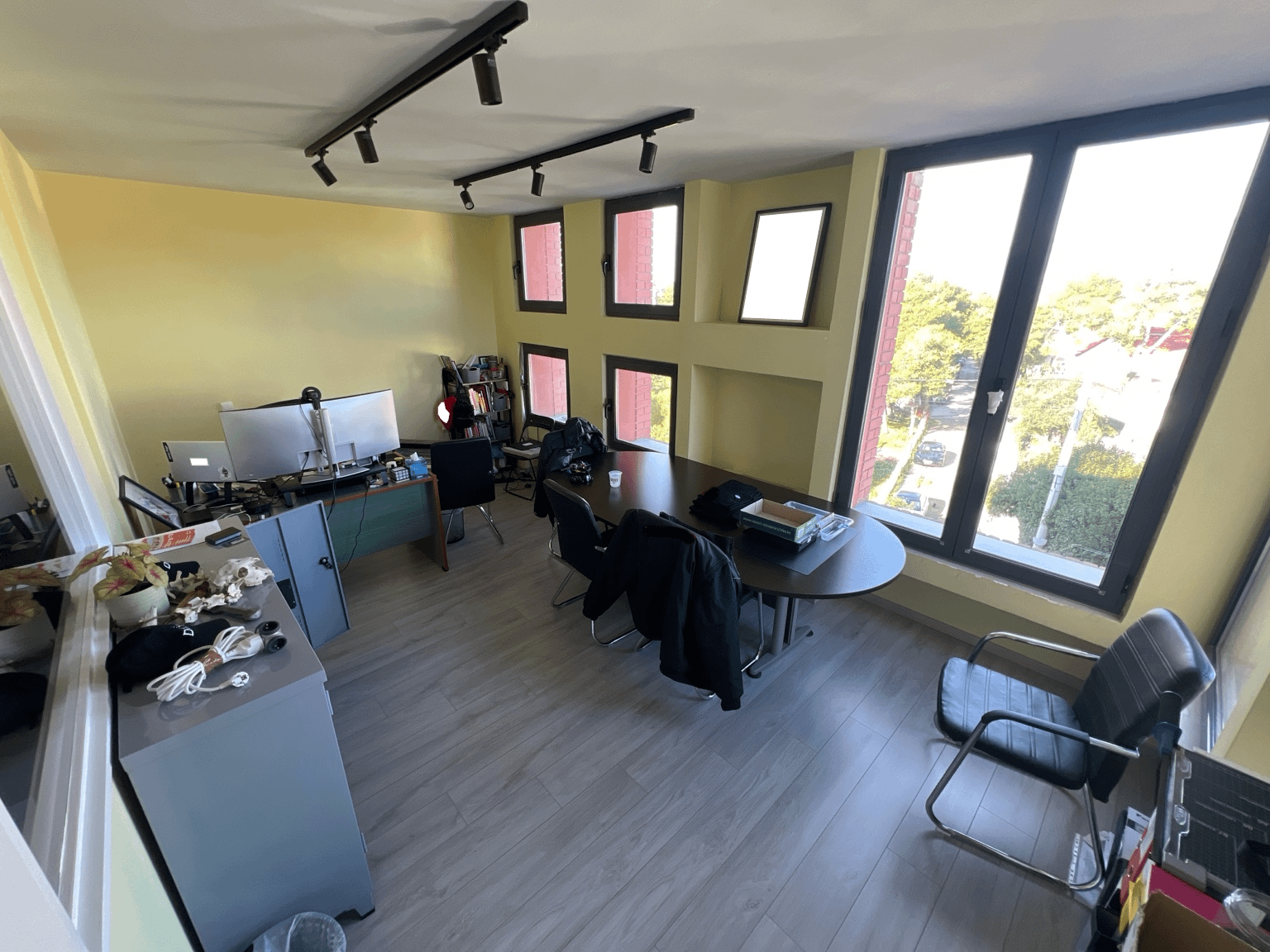 The room is occasionally used as a meeting room too (I participate in most of the meetings), and when it is not, the large table is pushed to the wall.