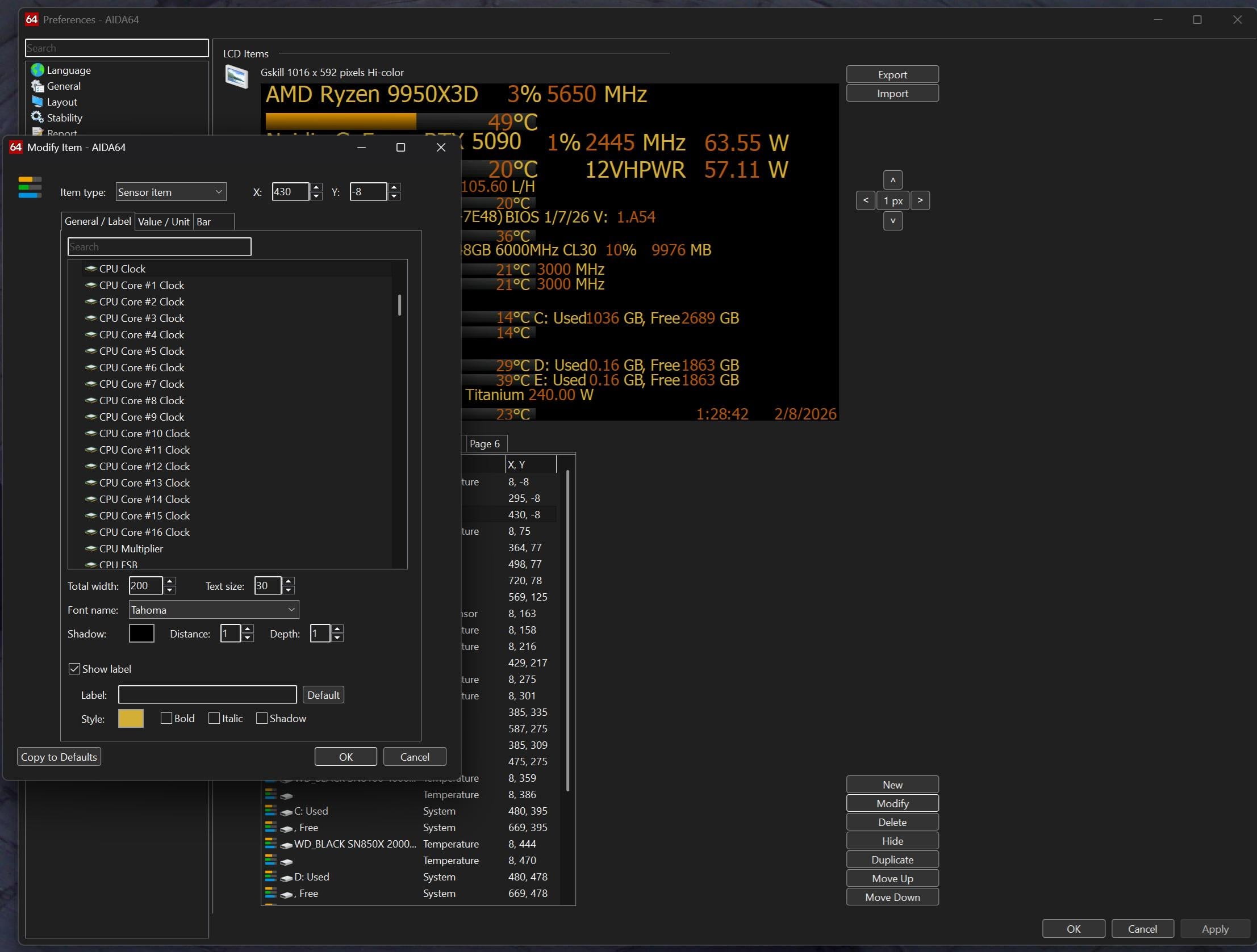 I'm working on a modestly aggressive OC/UV on a 9950x3d and I have a secondary display that I use to keep abreast of my system stats with ADA64. Does anyone know if it's possible to monitor the frequency of CCD1 with ADA64? All I can seem to track are individual core clocks and then "CPU Clock", which I believe corresponds to CCD0. While I see the appeal of tracking individual cores, I'd really like to simplify the situation and simply watch CCD0 and CCD1 as the display I'm using is already getting pretty crowded, as it is.