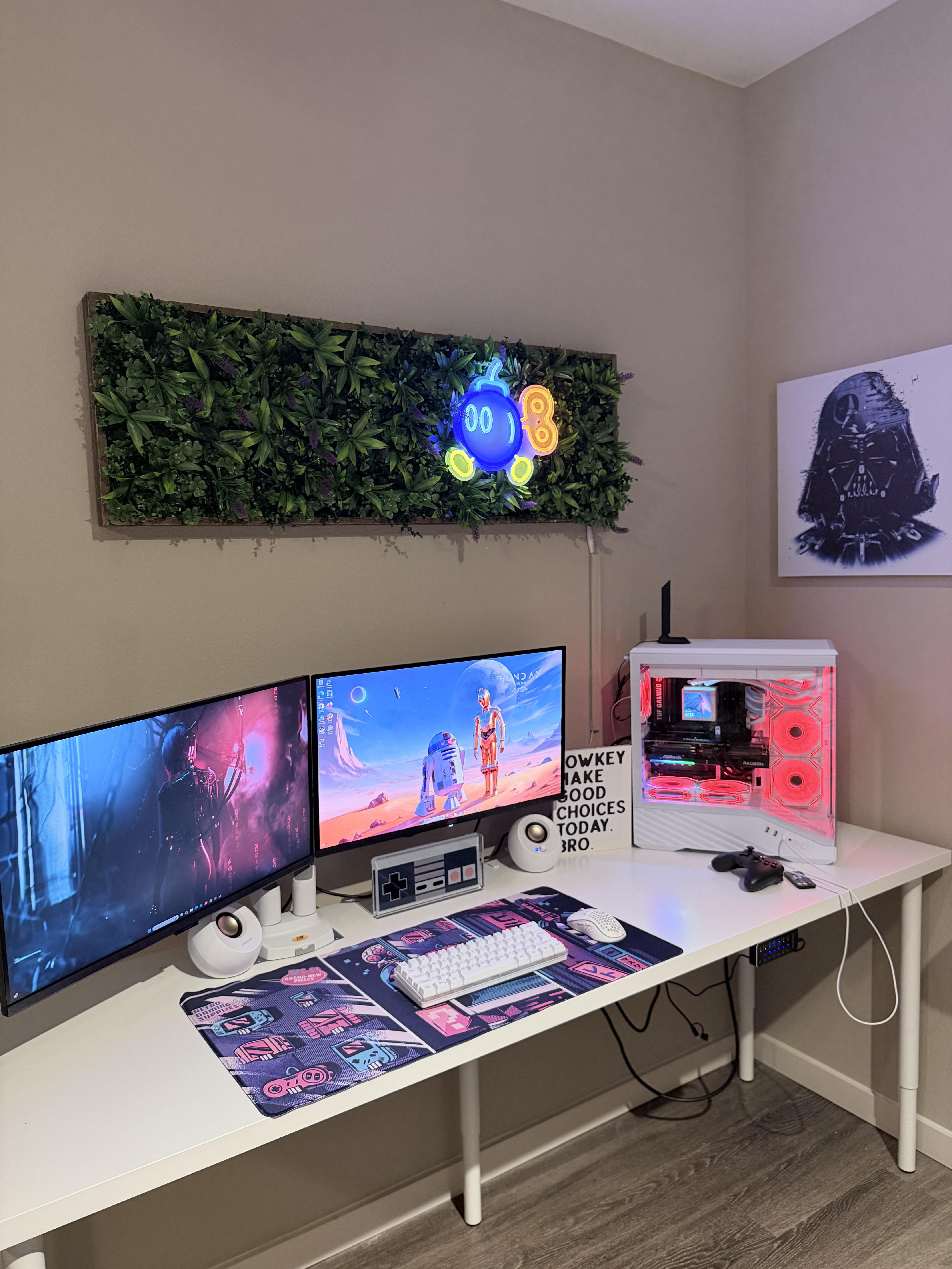 • Secondary (left): Samsung Odyssey G7 — 27” 3840×2160 144Hz