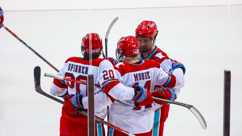 Senior captain Mason Campbell (Rosemount, Minn.) tied the game and began a flurry of four goals – two for each team – with 3:57 left in the period. Junior forward Chris Kernan (Maple Grove, Minn.) pulled the puck from a scrum on the half-wall and junior forward Jack Wandmacher (St. Louis Park, Minn.) delivered a perfect pass across the slot for Campbell to one-time into the back of the net.