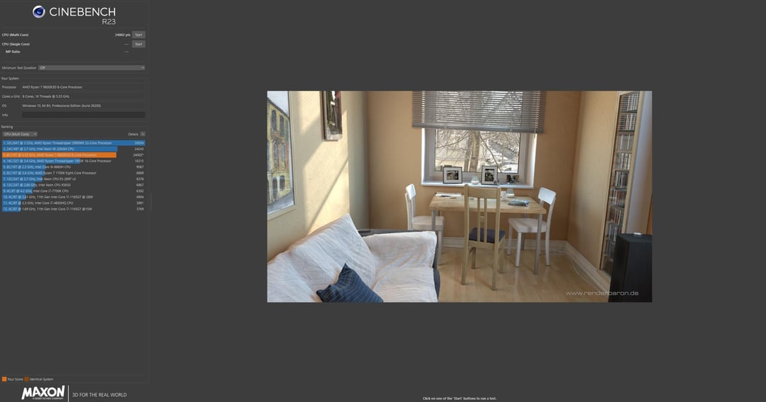 – R23 Multicore – single run 24,002. Consistently hit 23,9xx. 24,xxx only on lucky runs. 76C forgot to pull up HWinfo for this one