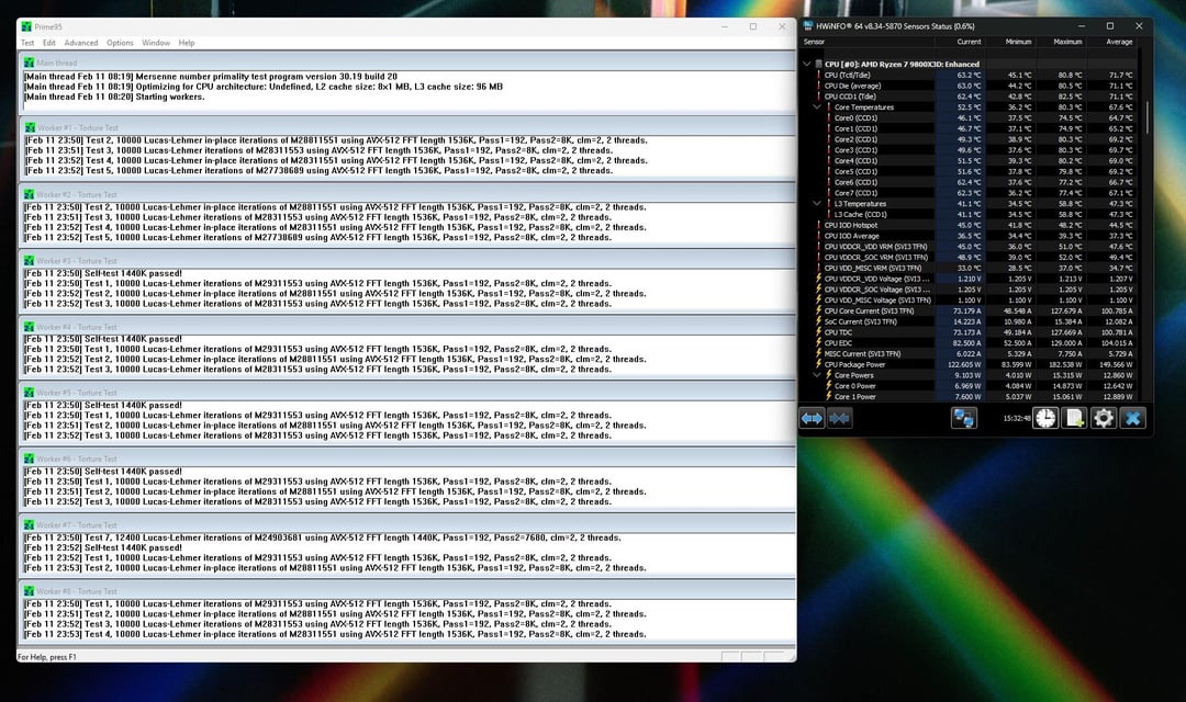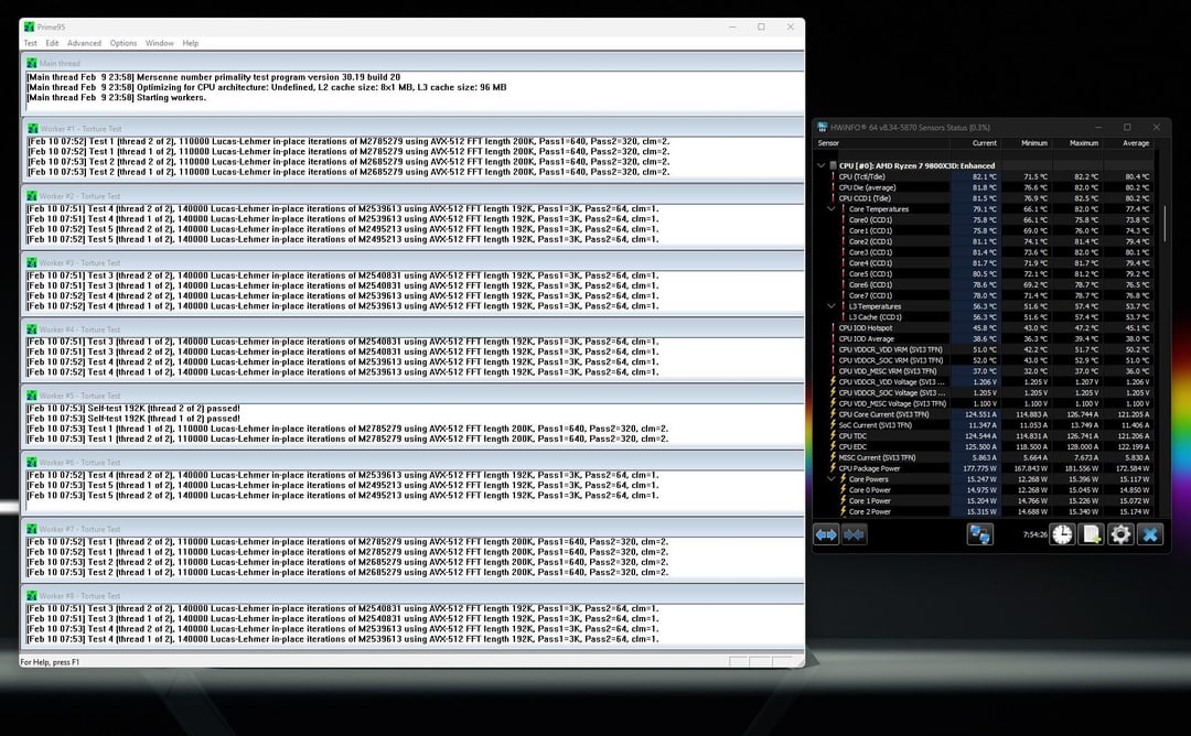 – Prime95 – Small FFTs, 8hrs, 82C