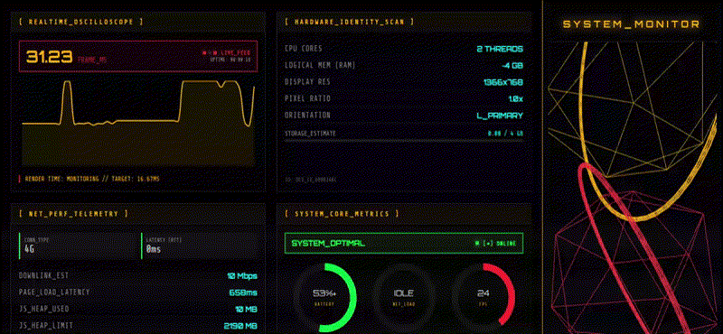 - Real hardware detection (CPU cores, RAM, screen res, storage – all work)