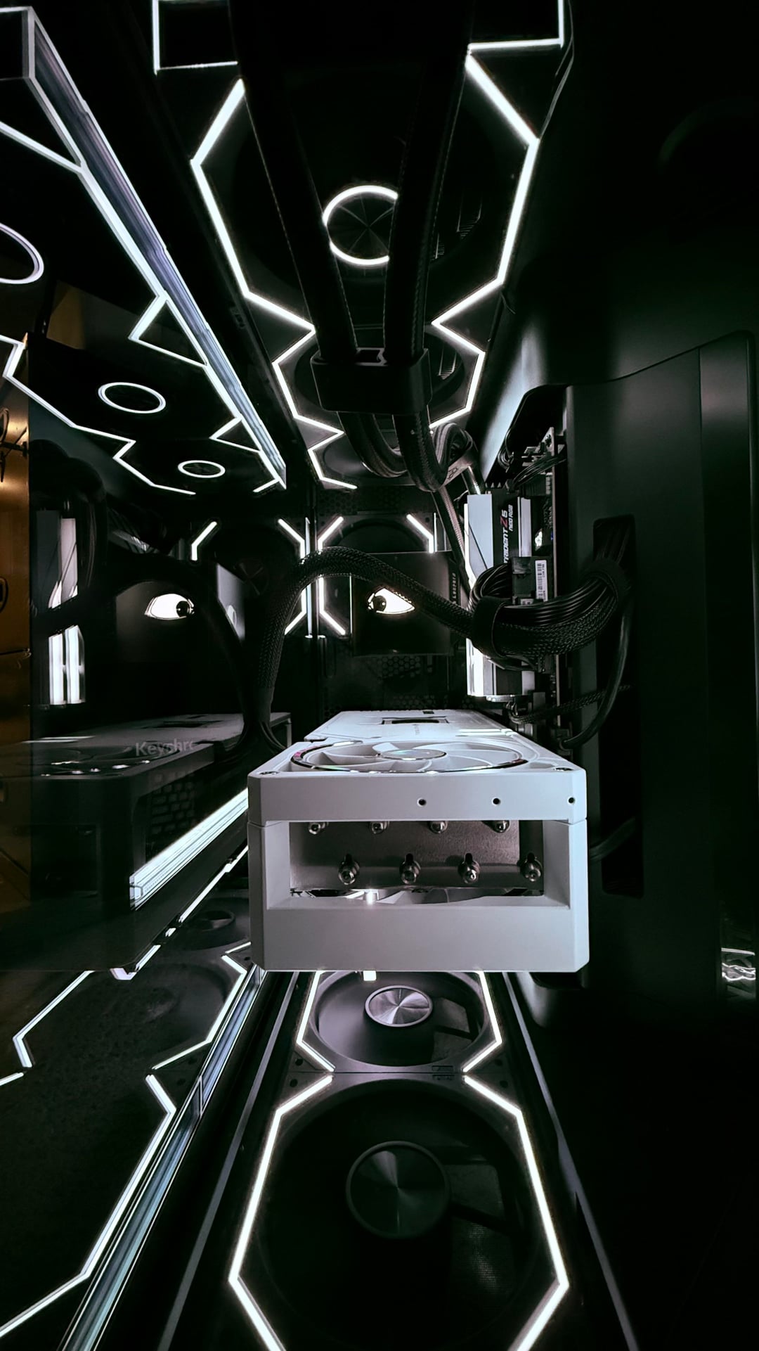 Just finished tonight. Probably the easiest case I've ever worked in. I might switch to 420mm fans eventually, since that is what it's designed for, but these are what I had. The only drawback that I've yet to see a reliable fix for is that you have limited options how to route power for large 50 series GPUs. None of which are very discreet. Other than that, it's killer. Moves air extremely well, almost feels drafty in my office now.