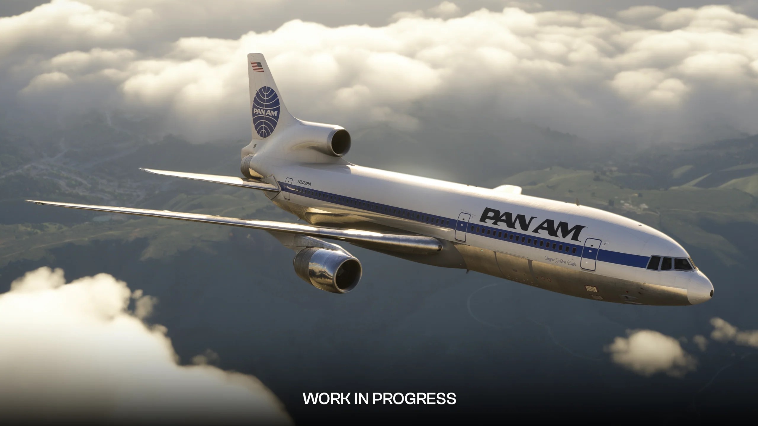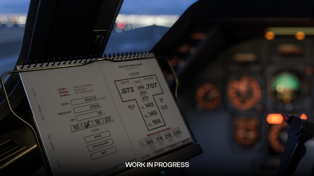 Visually, the TriStar is shaping up with detailed cockpit textures, fully adjustable integral panel backlighting, instrument illumination, pedestal flood lighting, dedicated Flight Engineer station lighting, and overhead flood lights. Exterior dynamic lighting that interacts dynamically with fog, cloud density, precipitation, and reflective surfaces. Wing flex, and a range of high-quality ‘3D decal’ liveries are planned for release, including Delta, British Airways, Air Transat, LTU, Pan Am and United and many others.