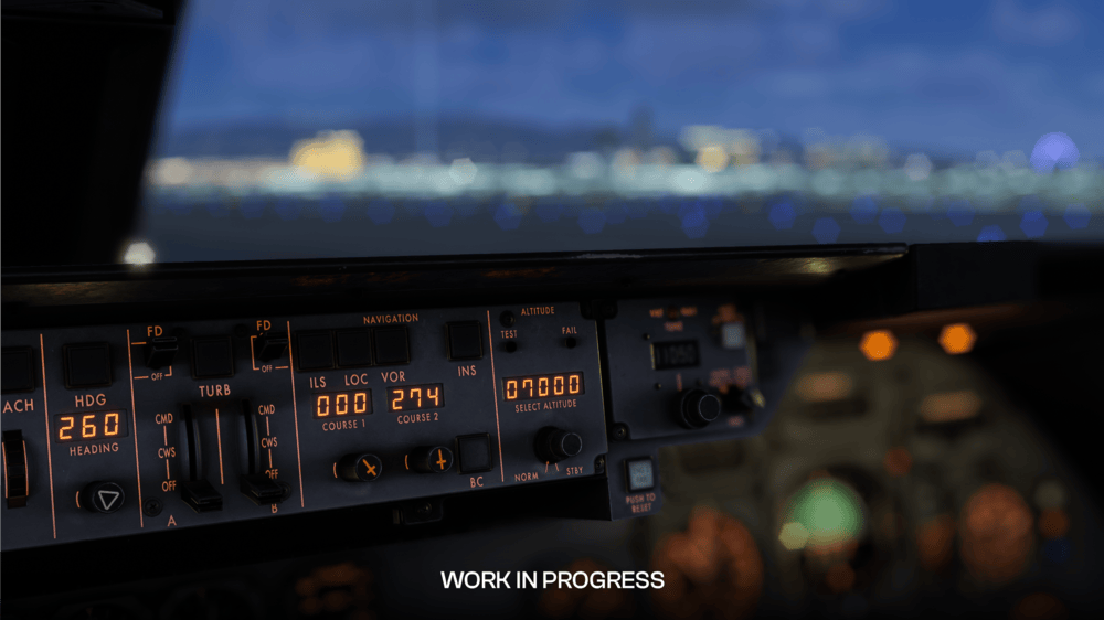 Systems depth remains a major focus, with the Automatic Flight Control System including realistic autopilot behaviour and supporting full CAT IIIB autoland capability, accurate flare logic, de-rotation behaviour, and rollout control. Detailed hydraulic, electrical, fuel, and environmental systems will also be modelled. A fully interactive Flight Engineer panel is also planned, though sim pilots can opt for automated assistance if preferred.