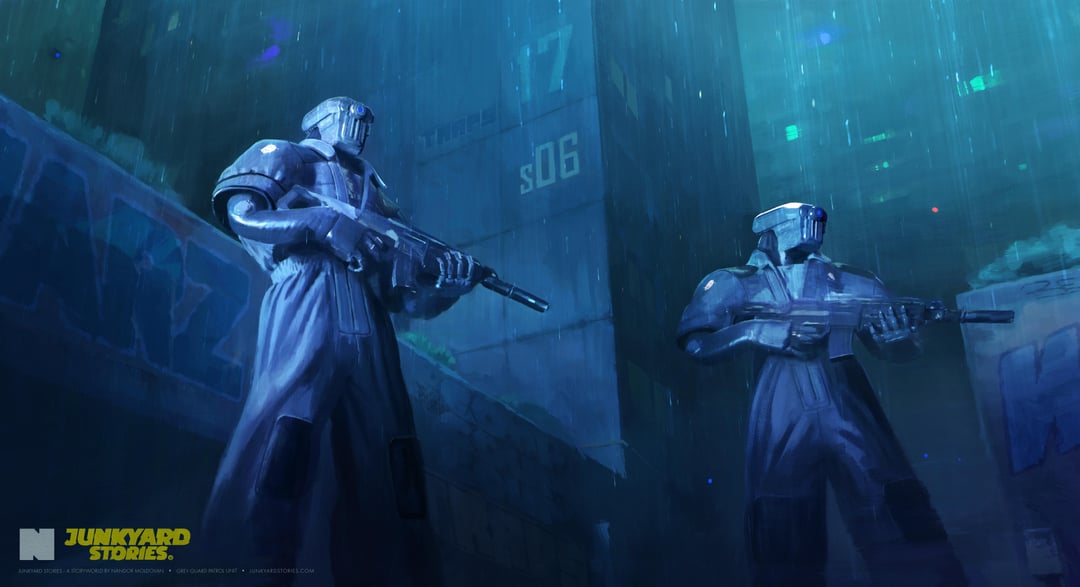 The streets of Block07 are patrolled entirely by the new models . They’re constantly tracking faces and predicting behaviours, analysing every step, every glance, every hesitation. Their orders are clear: keep the overground sectors under control. Keep the city predictable. Keep the walls of Block 07 defended against disorder.