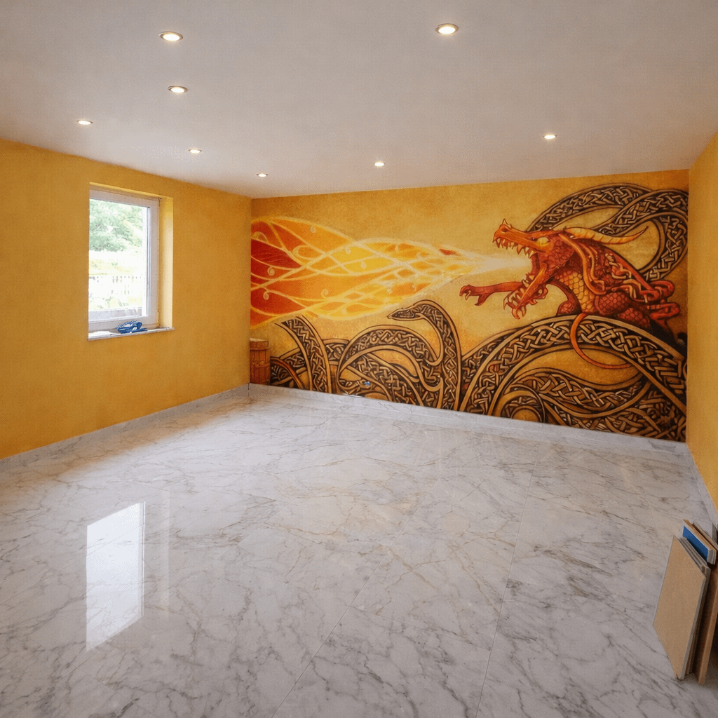 i've been messing with AI while designing my house decor and came up with the design on the photo for my living room, personally i think it's sick because i've been a fan and actively playing the game for more than 10 years now. my friend has an other opinion and decided to try and convince me it's cringe and will look really bad. any opinions/suggestions?