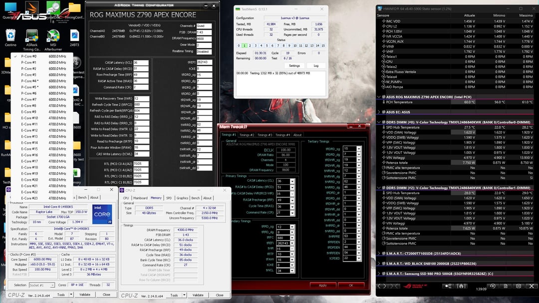 Photo 1: P-core 60, E-core 47, ring 53, LLC8 1.36V, 8600C36 tweek. (Test profile only) 260W on TM5 test passed, over 420W CB23.