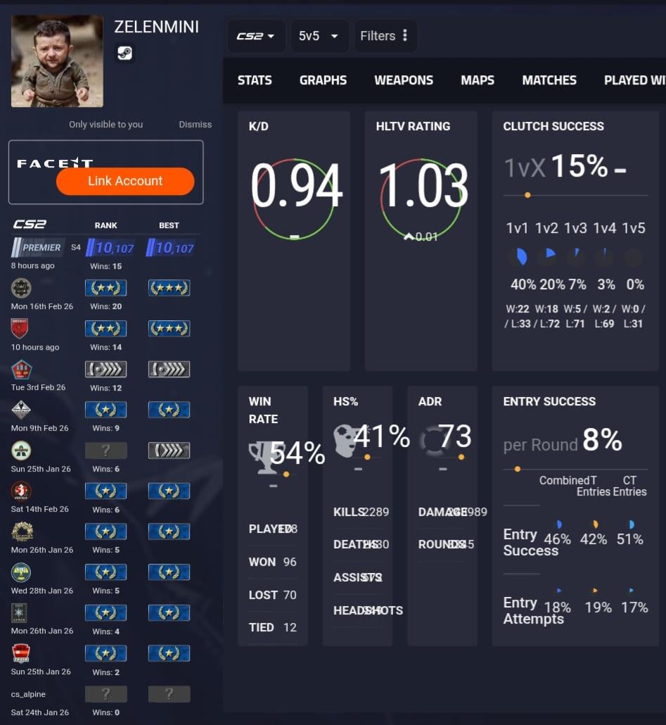 2 weeks ago first premier match and now i am ranked at 10k elo i have 275H on the game, would you say its good, average, or bad ?
