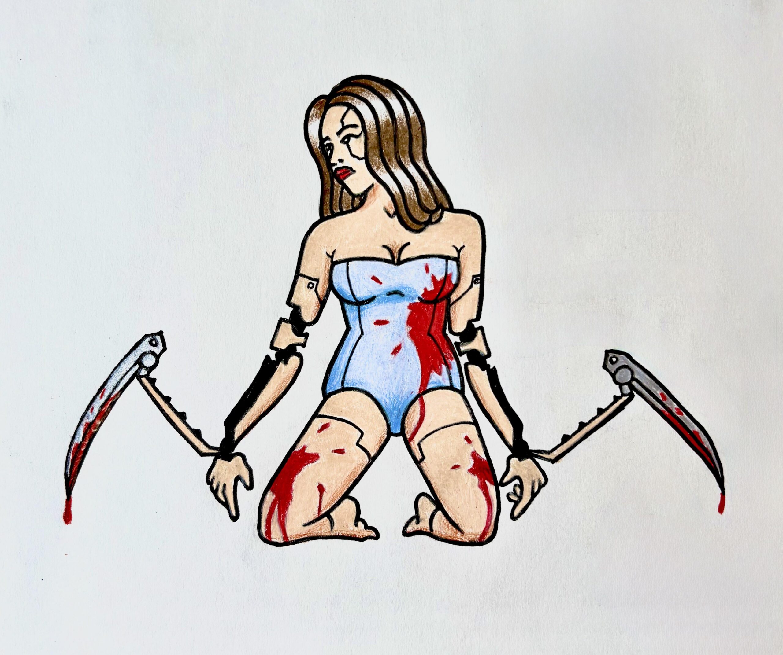 Tried to do a cyberpsycho pin up referencing the very first teaser of the game