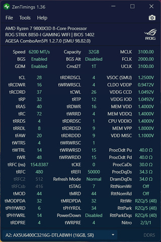 • RAM: XPG Lancer White AX5U6400C3216G-DTLABWH Single Rank Hynix 16 Gb A-die (Canopus / 15 nm) / 1 die H5CG48AEBDX018 chips