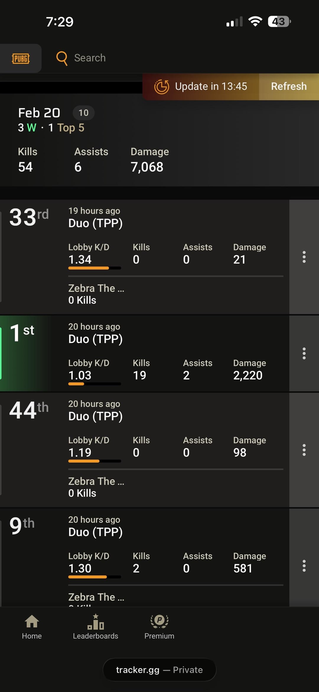 No casual matches were played before you ask! 54 kills and 7K damage in 10 games! Not sure I’ve ever done it before! With 3 wins which is surprising since we hardly play for wins these days! consolePLAYERUNKNOWN'S BATTLEGROUNDSPLAYERUNKNOWN'S BATTLEGROUNDS ConsolePlaystationpubgPUBG ConsolestadiaXboxXbox one