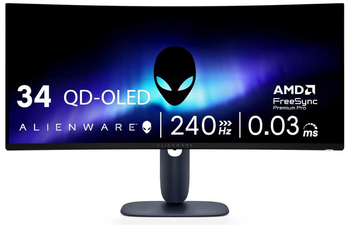 34-inch 240Hz QD-OLED Curved Gaming Monitor – AW3425DW – 34.2-inch WQHD (3440 x 1440) 240Hz 0.03ms Display, 1800R Curve, AMD FreeSync Premium Pro, VESA AdaptiveSync, VESA DisplayHDR TrueBlack 400