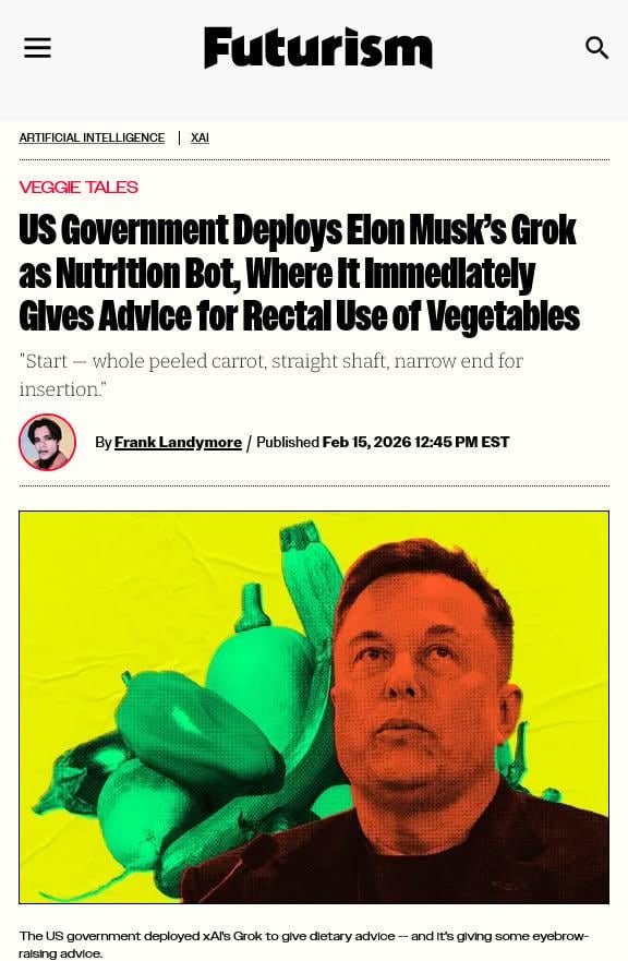 US Government Deploys Elon Musk’s Grok as Nutrition Bot, Where It Immediately Gives Advice for Rectal Use of Vegetables CyberpunkCyberpunk MemesHigh TechLow Life.