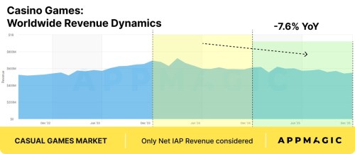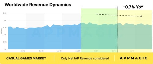 IAP revenue from the casual games market declined by 0.7% YoY in 2025, according to Appmagic’s latest report.