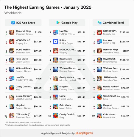 Monopoly Go leads January’s earnings chart with $134m