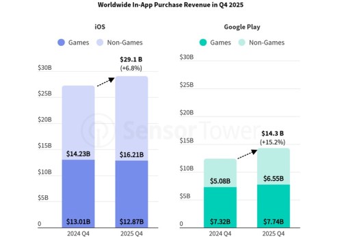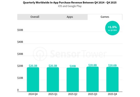 Mobile games IAP revenue from the App Store and Google Play in Q4 2025 rose by 1.5% year-over-year to $20.6bn.