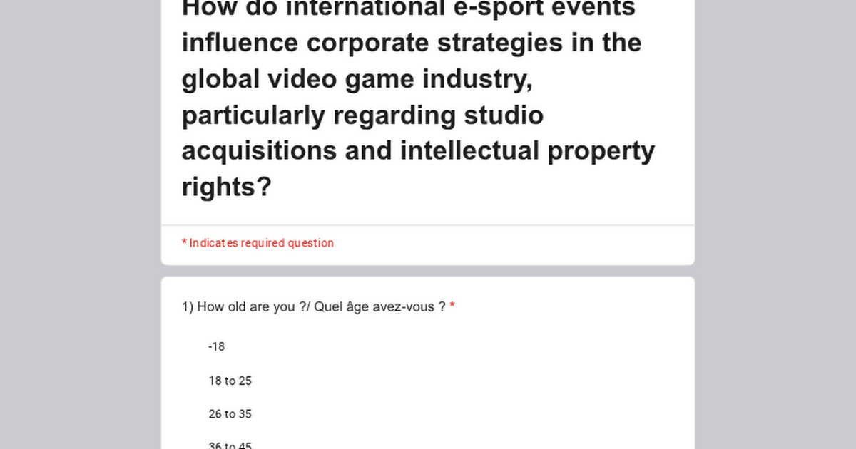 As part of my final year of studies, I have to complete a thesis. I have chosen esports and international events as my topic. To support my research, I need 100 responses to this questionnaire, I almost have 75 answer.