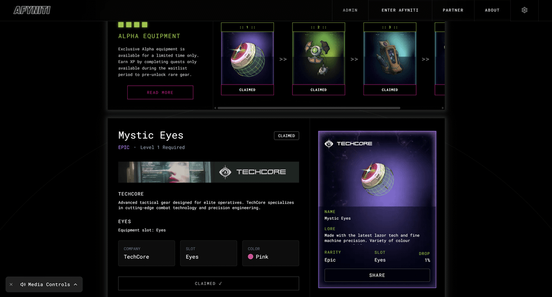 It’s called Afyniti, a narrative-driven quest platform set inside a cyberpunk universe where users progress through digital megacities, complete missions, unlock gear, and uncover deeper layers of story and factions.