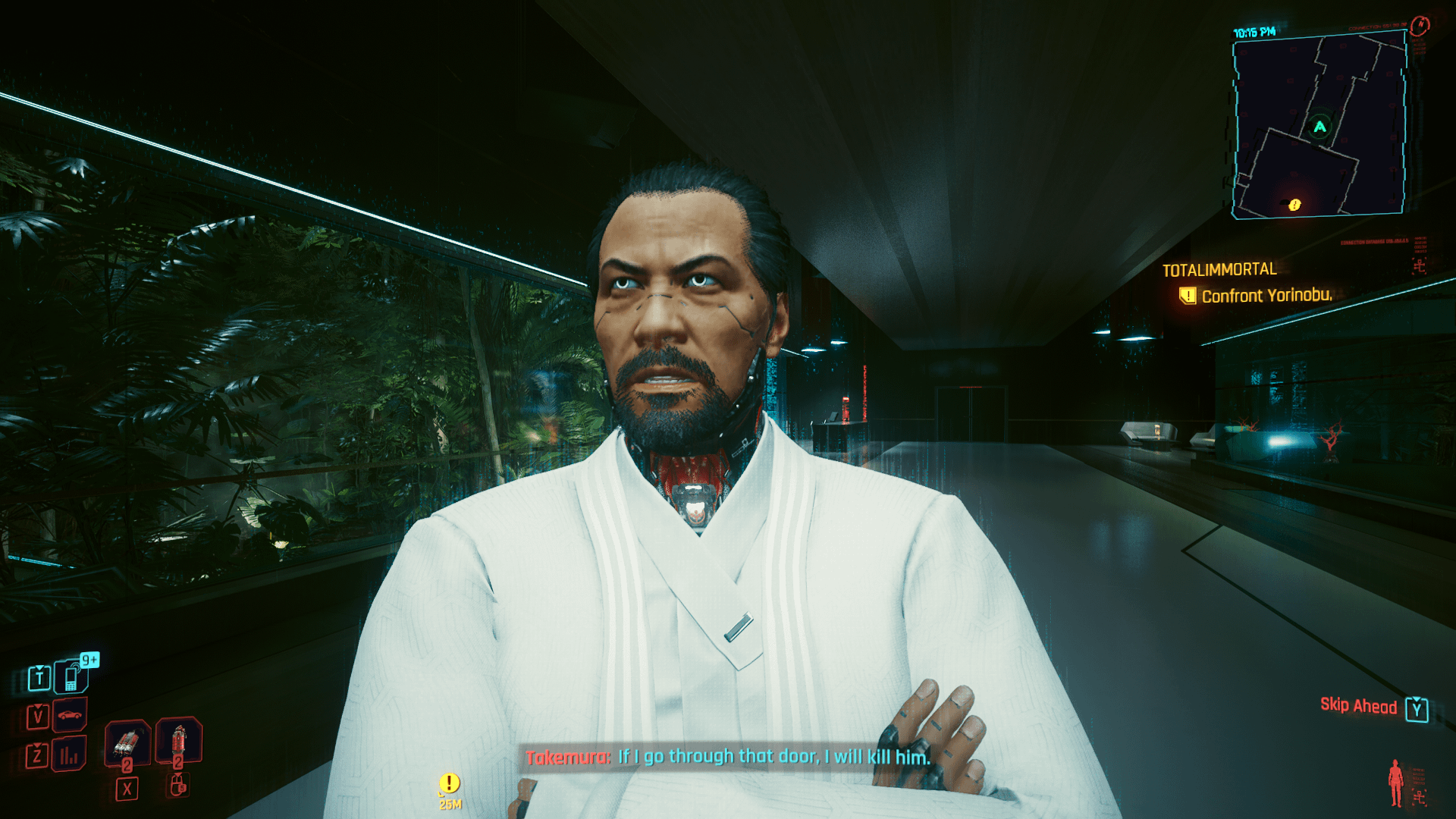 After the Smasher fight V and Goro have a short conversation outside of Yorinobu's quarters. When thanking Goro for his assistance in the battle, Goro bows his head to V as a final gesture.This game has nuance out the friggen wazoo Cyberpunkcyberpunk 2077cyberpunk game