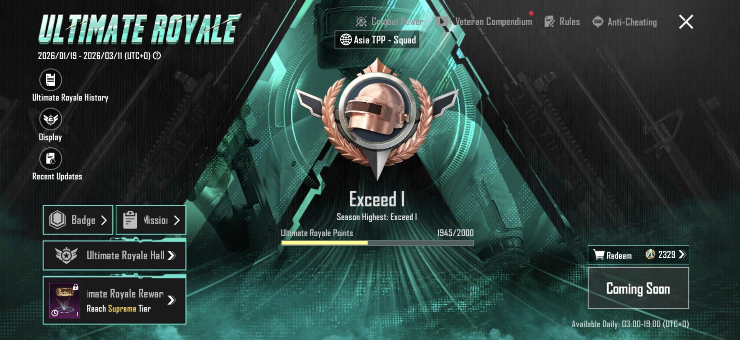 my current rank is exceed 1 and I'm almost 200 matches from playing in thisthere's only 11 days till the end seasoncan I reach it? PLAYERUNKNOWN'S BATTLEGROUNDSPLAYERUNKNOWN'S BATTLEGROUNDS Mobilepubgpubg mobile
