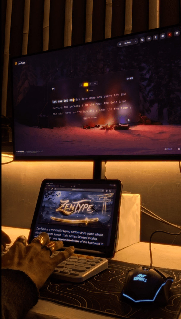 Trying to create the ultimate 2:00 AM lofi atmosphere. I made a custom minimalist typing companion to keep the screen clean but vibey. Thoughts on the look?