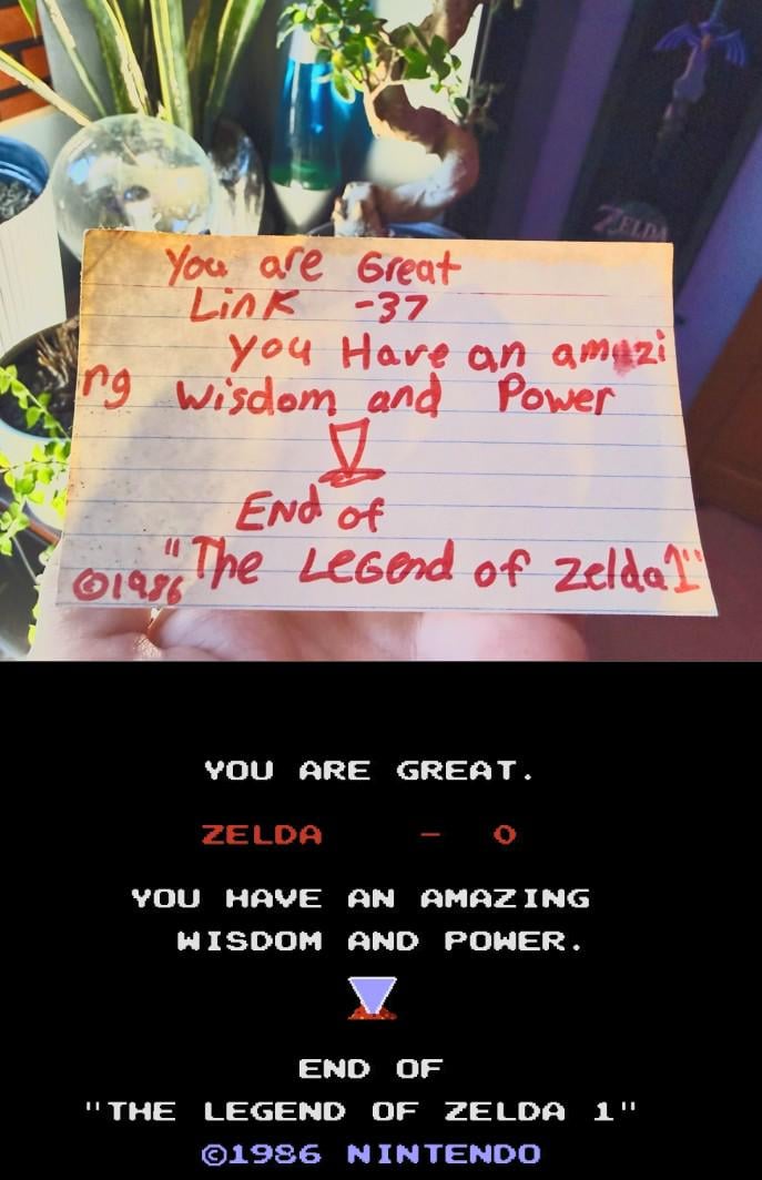 Didn’t have a camera in ’88, so wrote the ending of Zelda on a cue card gaminggaming memeGaming Memesmeme