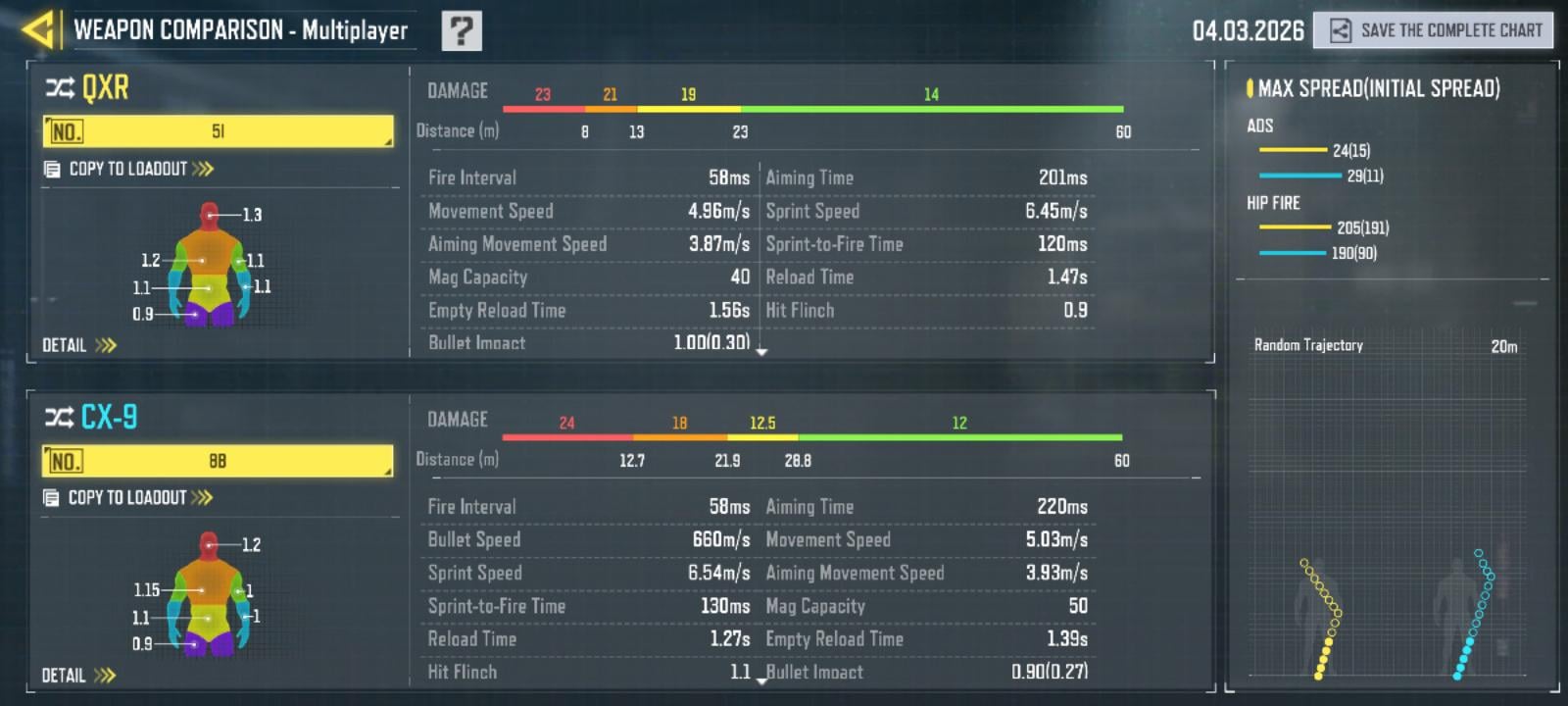 MISC STATS (Bullet Speed, Hit Flinch And Bullet Impact) : QXR, it had no Bullet Speed meaning it has no delay at range to hit detect, its Hitscan, CX9 has a Projectile system that made the gun had bullet speed, although its enough to battle in close range with no delay, at range it would be very noticable… it has 0.9 hit flinch too instead of CX9's 1.1… And Lastly Bullet Impact, QXR got it at 1.00 instead of CX9's 0.90 which makes the QXR Hit more harder to make the opposition get a higher Hit Flinch
