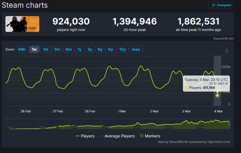 cs2 player count dropped after csgo returned and csgo is going up fast ash rn
