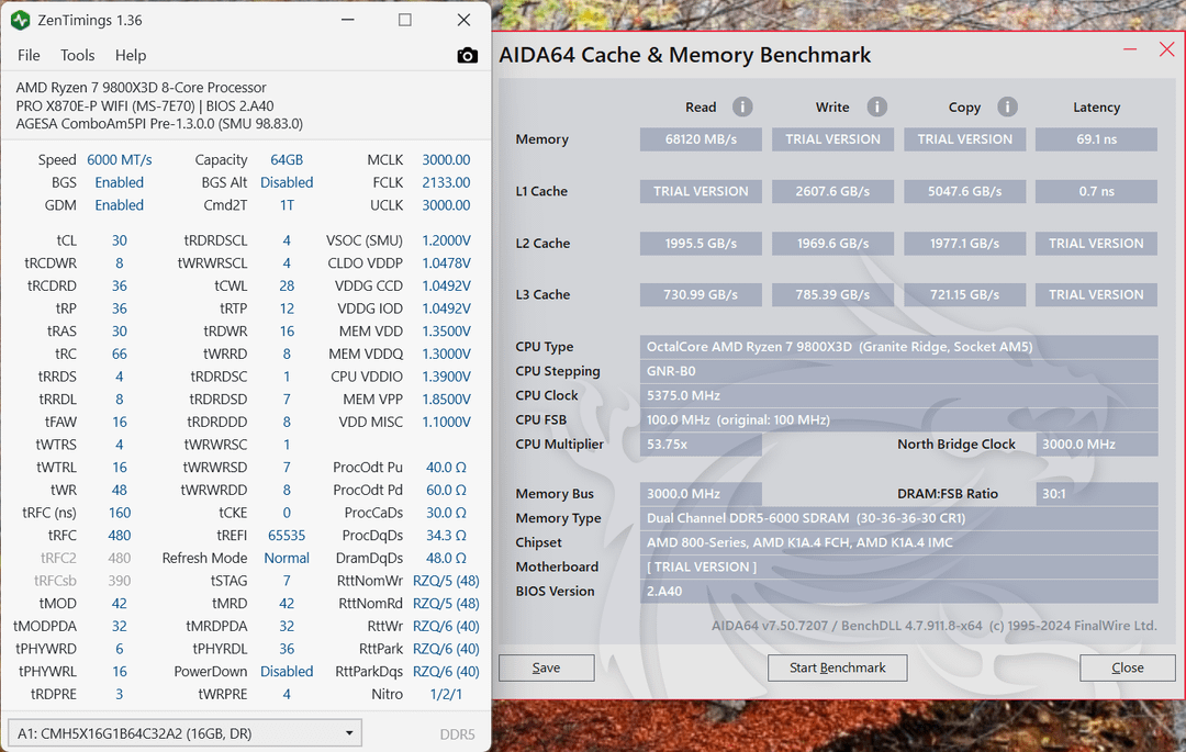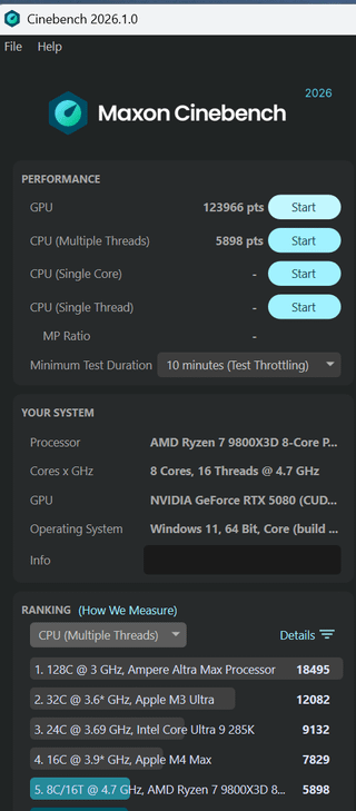 Hey all, I think that I have run out of changes that I know of for tweaking a 4-DIMM DDR5 setup. AIDA latency 69.1ns (real-time priority). Cinebench scores in images are with high priority set.