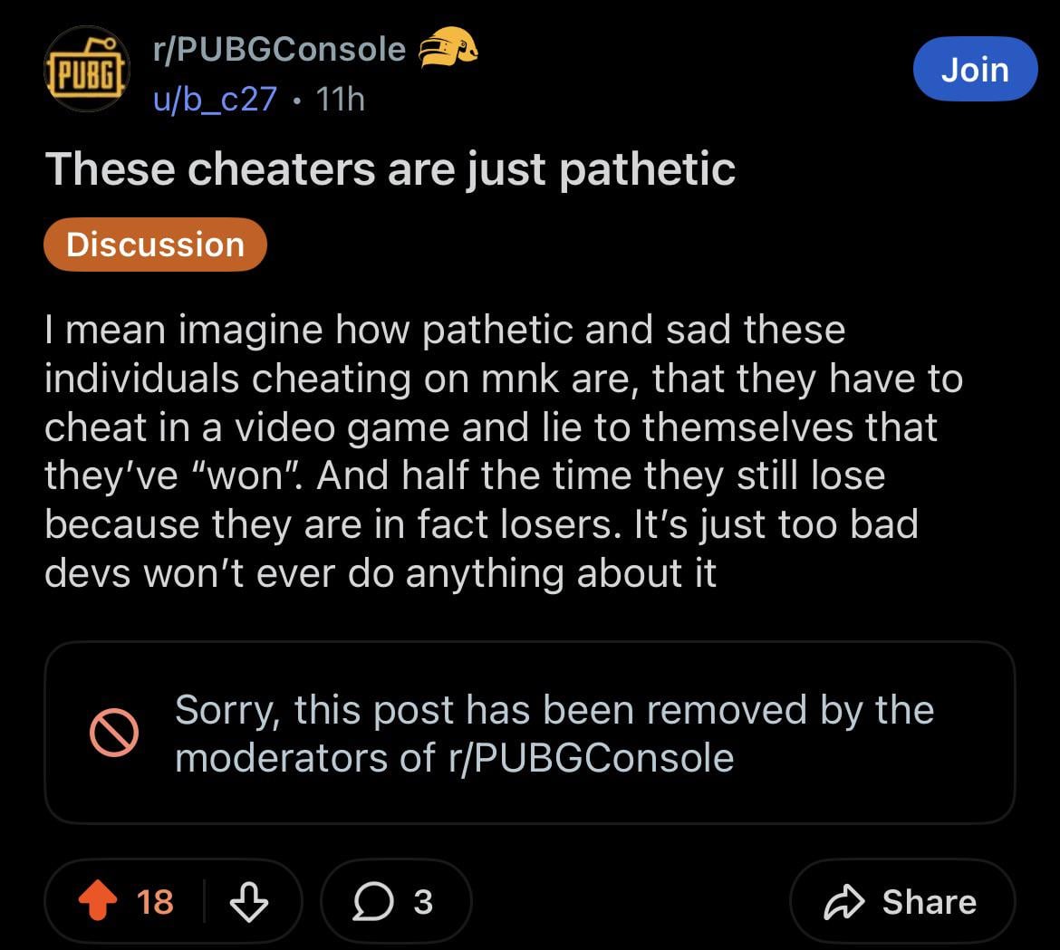 They’ll ban a discussion post calling out cheaters but they won’t take down clips from the cheaters themselves. This is just sad at this point, the game is pretty much unplayable now how many cheaters there are. And no one does anything about it. The mods are bitches, won’t be surprised when they probably ban me for this post too