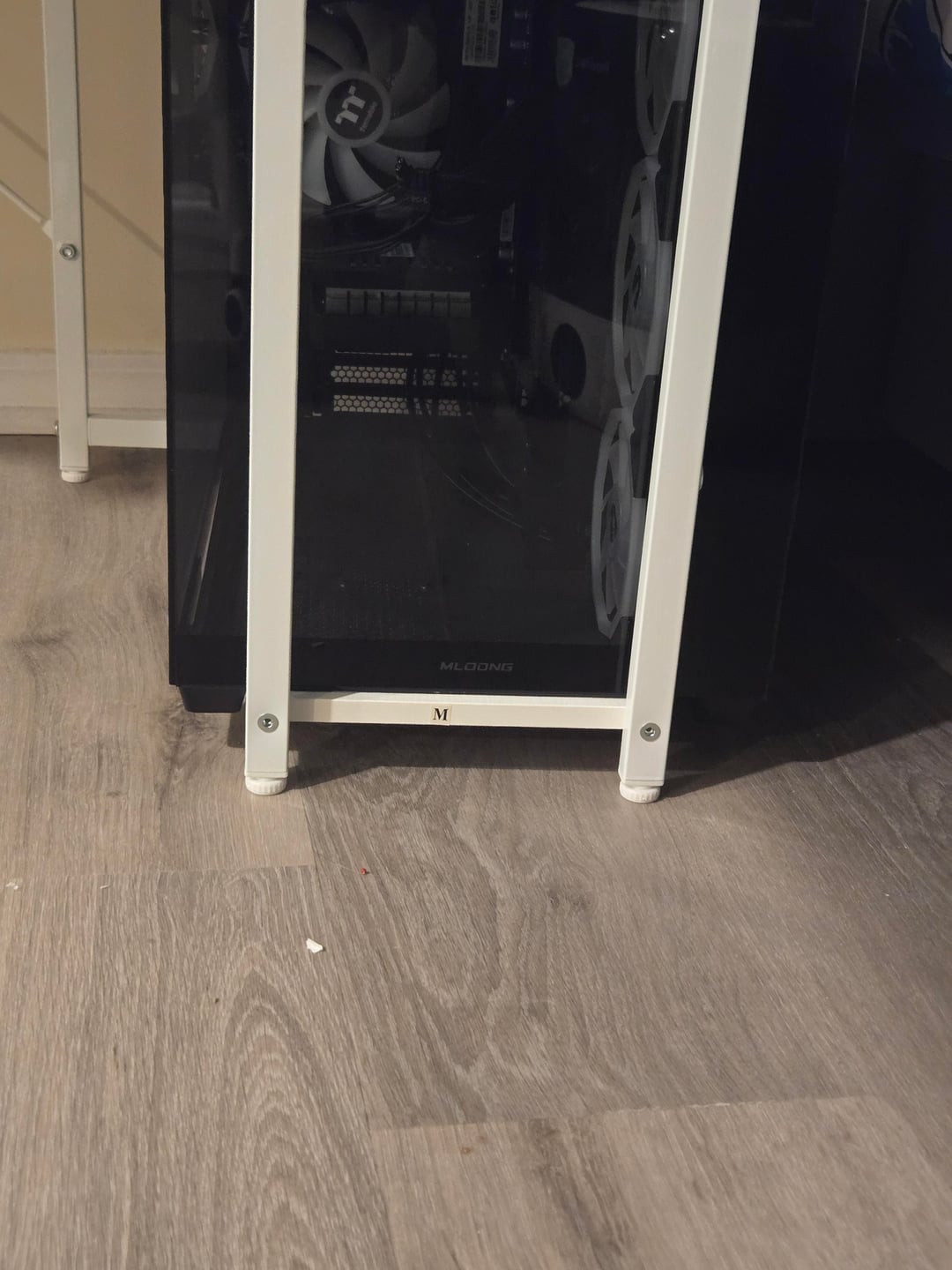 I got this new desk, but my PC is too wide for the compartment here. I fixed it, but I was wondering if the wood being on the very bottom of the pc there will light on fire : ( game pcgaming pcPC