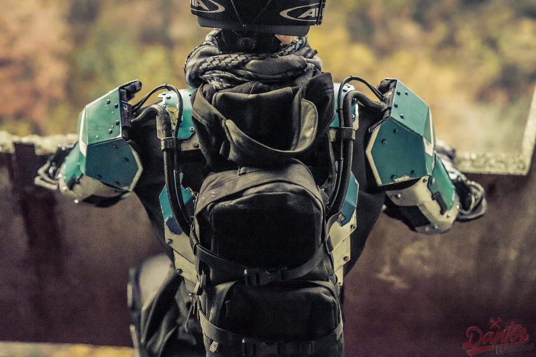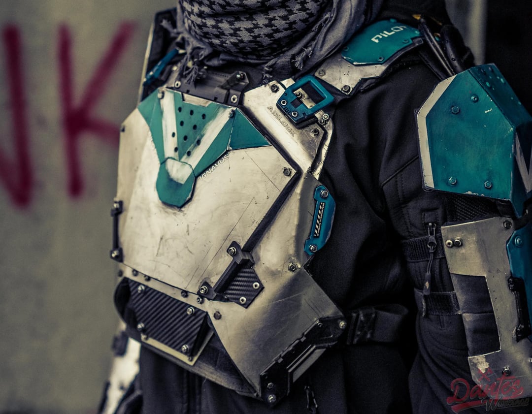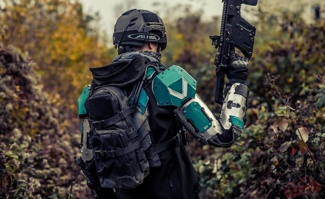 The set includes magnesium alloy armor plates, integrated hydration, wiring and quick release style details to push the whole mech pilot aesthetic further.