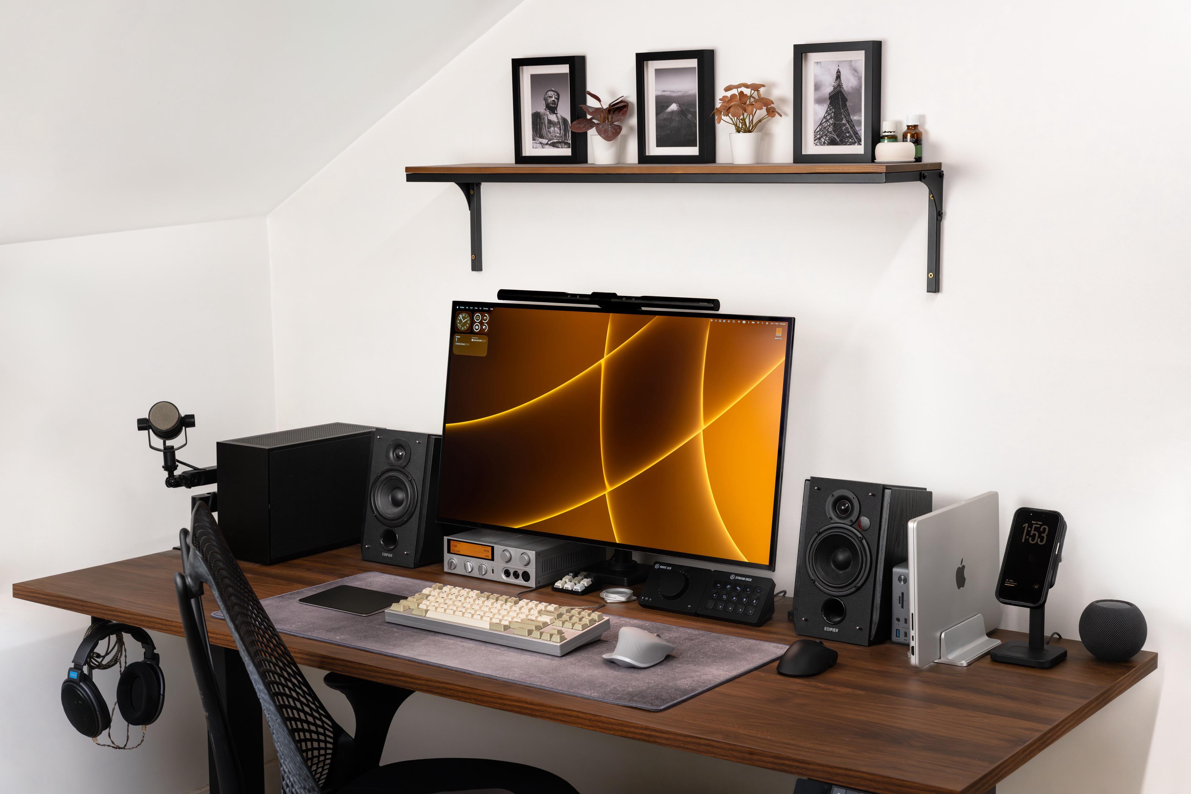 Share Facebook Twitter Pinterest LinkedIn My hybrid workspace and gaming setup. PC: Ncase T1 build w/ 7800x3d, 64gb RAM, 5070ti Laptop: Macbook Pro M3 Max Battle StationsBattlestations